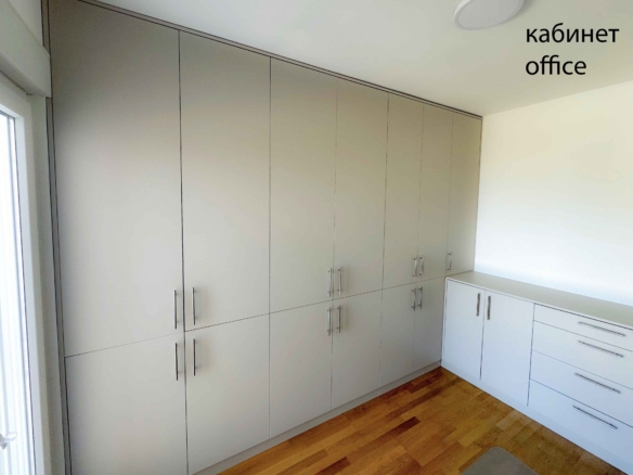 Furniture: in the living room there is a built-in kitchen, in the bedroom there is a chest of drawers, in the study there is a wardrobe and a chest of drawers.